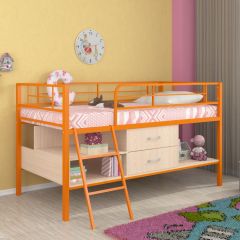 Кровать-чердак "Севилья МИНИ" с ящиком (Оранжевый/Дуб Молочный)