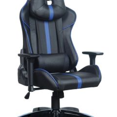 Кресло компьютерное BRABIX "GT Carbon GM-120", две подушки, экокожа, черное/синее, 531930