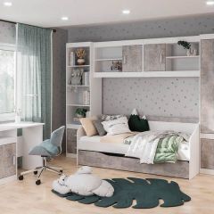 Комод Эго К-1 2-ящика (на ножках) Бетон светлый/Белый глянец | фото