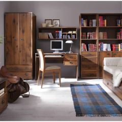 Коллекция мебели для кабинета «Индиана» позволит Вам сделать помещение уютным, стильным и функциональным. В него входит шкаф-витрина с открытыми нишами для книг, широкий письменный стол с двумя выдвижными ящиками и навесная полка с несколькими секциями. С помощью такого комплекта можно организовать комфортную рабочую атмосферу как в домашней обстановке, так и в офисе.