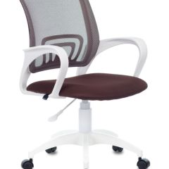 Кресло BRABIX "Fly MG-396W", с подлокотниками, пластик белый, сетка, коричневое, 532398, MG-396W_532398
