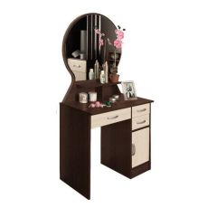 Туалетный стол «Надежда-М04» – эстетичный предмет интерьера, обеспечивающий пользователю комфортные условия для поддержания ухоженного внешнего вида. Круглое зеркало гармонично вписывается в общую конструкцию. Три выдвижных ящика и боковая секция с распашными створками предоставляют возможность хранения большого количества косметики, предметов ухода за лицом и средств гигиены. Под зеркалом установлена полка для расположения изящных вещей. Свободная ниша слева обеспечивает удобное размещение человека в положении сидя.